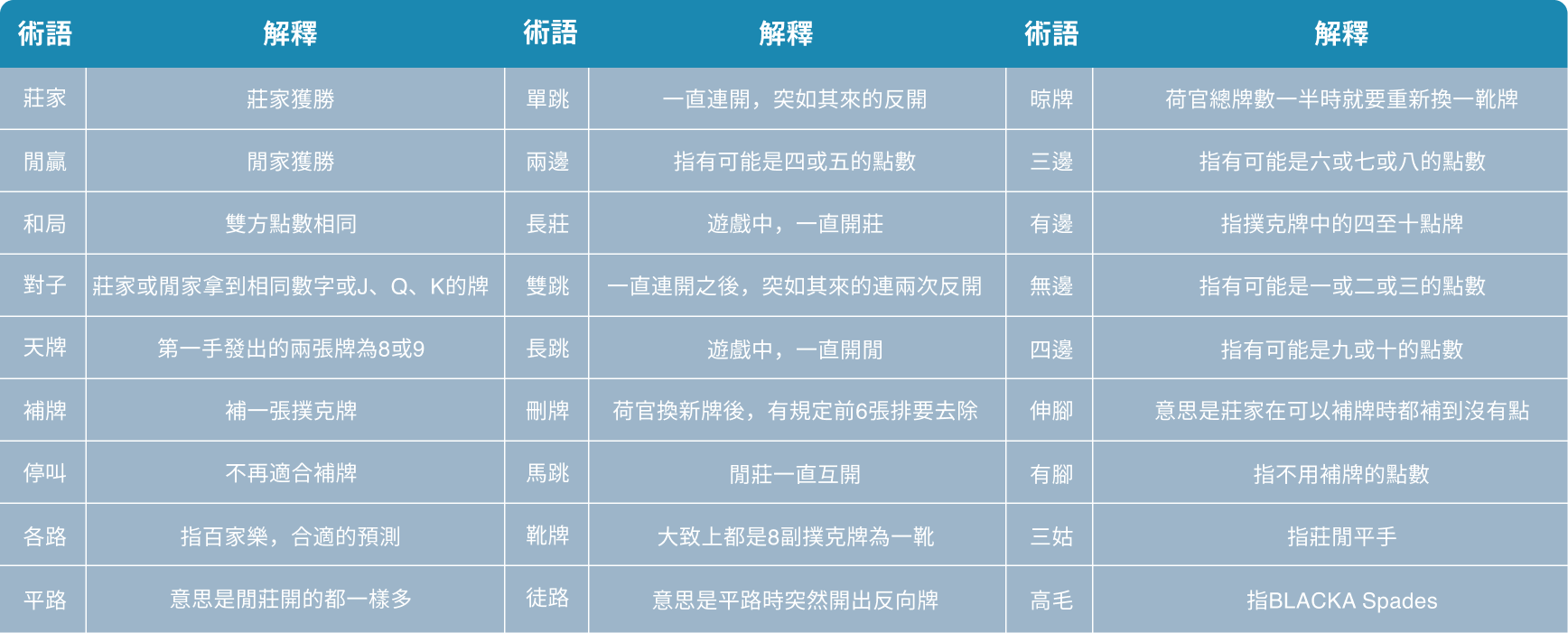 百家樂專業術語