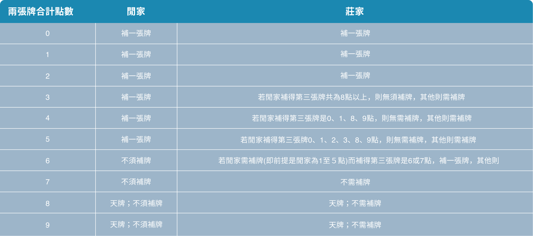 遊戲城百家樂補牌規則